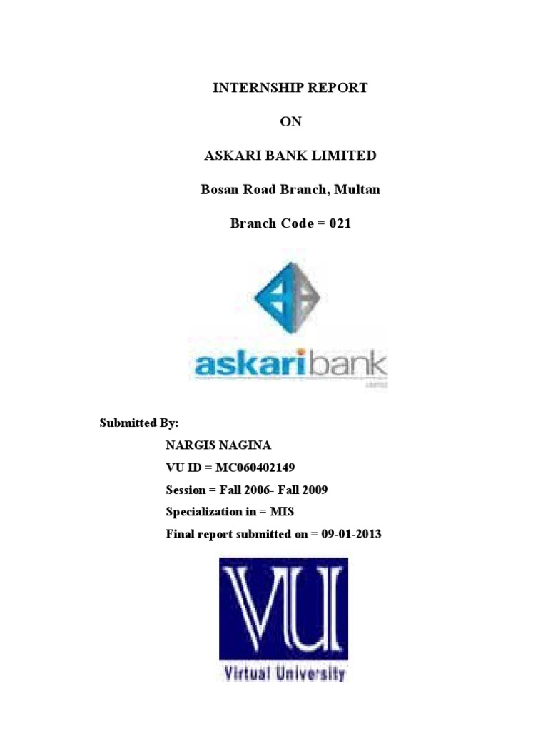 Doc Internship Report On Askari Bank Limited Hangu Road Kohat