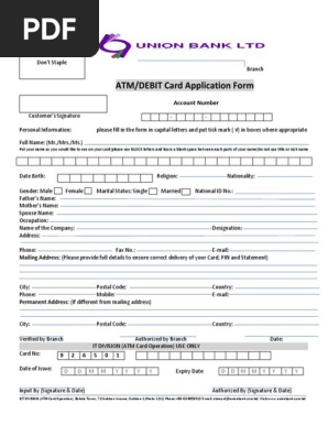 Atm Application Form 2 Debit Card Automated Teller Machine