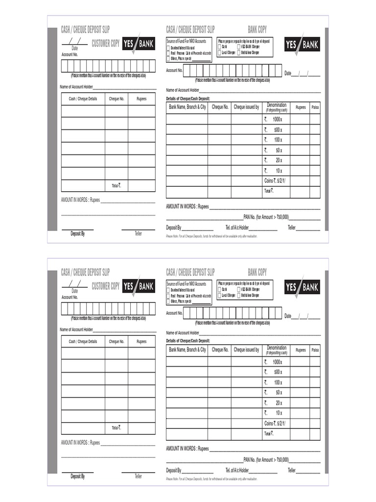 Yes Bank Online Deposit Slip Deposit Account Cash
