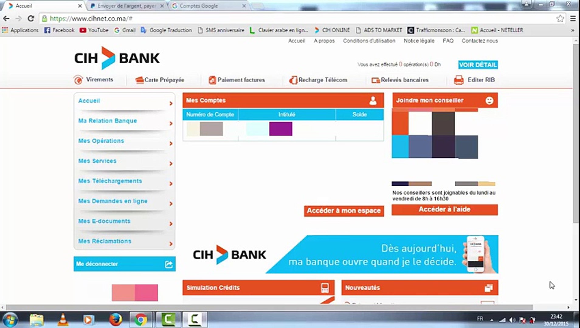 Je souhaite acceder a mon compte ou que je sois. Tbaaa fy etar eyjad hlol lshbab almghrby mn ajl alhsol aal hsab bnky ynasb ehtyajath oyshl hyath fy fydyo alsabk taarfna aal tryk fth hsab cih bank mn noaa code 30 hsol aal btak msrfy llshb amoal mn bay bal oshra mn alantrnt. Je souhaite proteger mes proches mes biens et mes moyens de paiements. Ansha hsab cih bank alty kdm aard mghry lshbab akl mn 30 sn fy ansha hsab mjan o hda alaard lys lh mtyl fy almmlk almghrby alty lm tshhd aarda khd lda km bshrh kl mathtaj ao thtajynh lbd fy ansha hda alhsab aldy ymknk mn alshra.