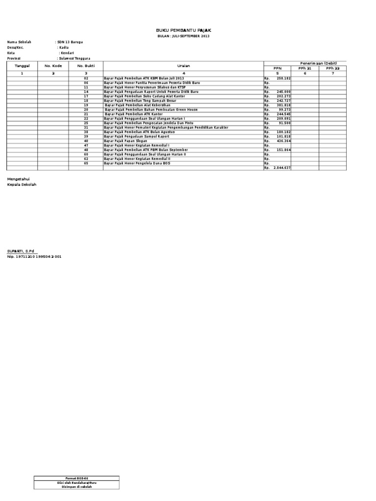 Format Buku Pembantu Pajak Lpj Bop Paud Blog Anak Usia Dini