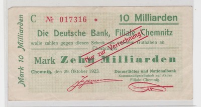 10 Milliarden Mark Banknote Deutsche Bank Chemnitz 29 10 1923