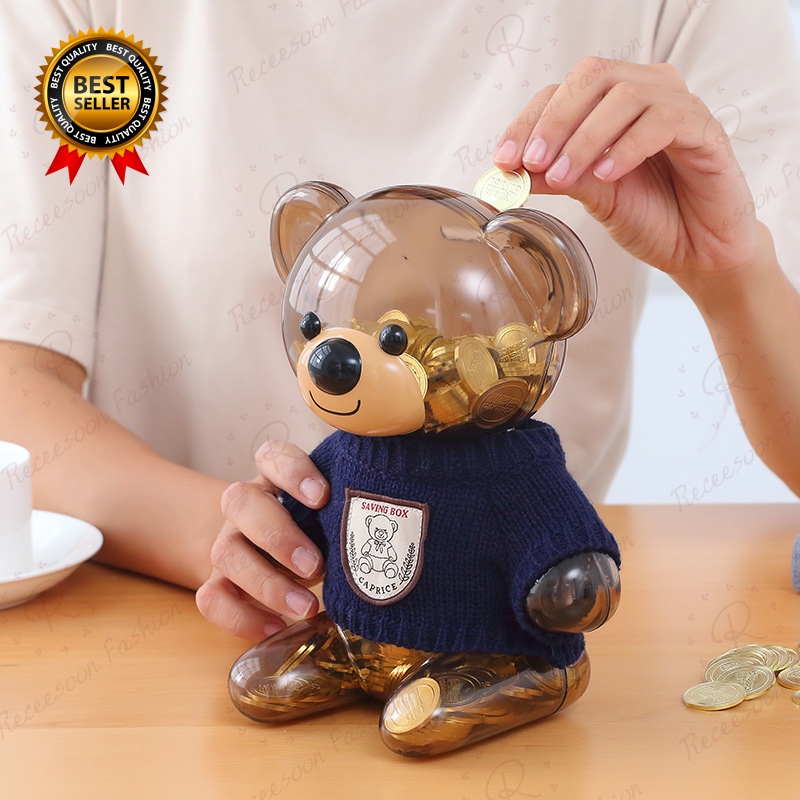 Cute Bear Piggy Bank Kids Coin Money Saving Box Cartoon Bear Girls