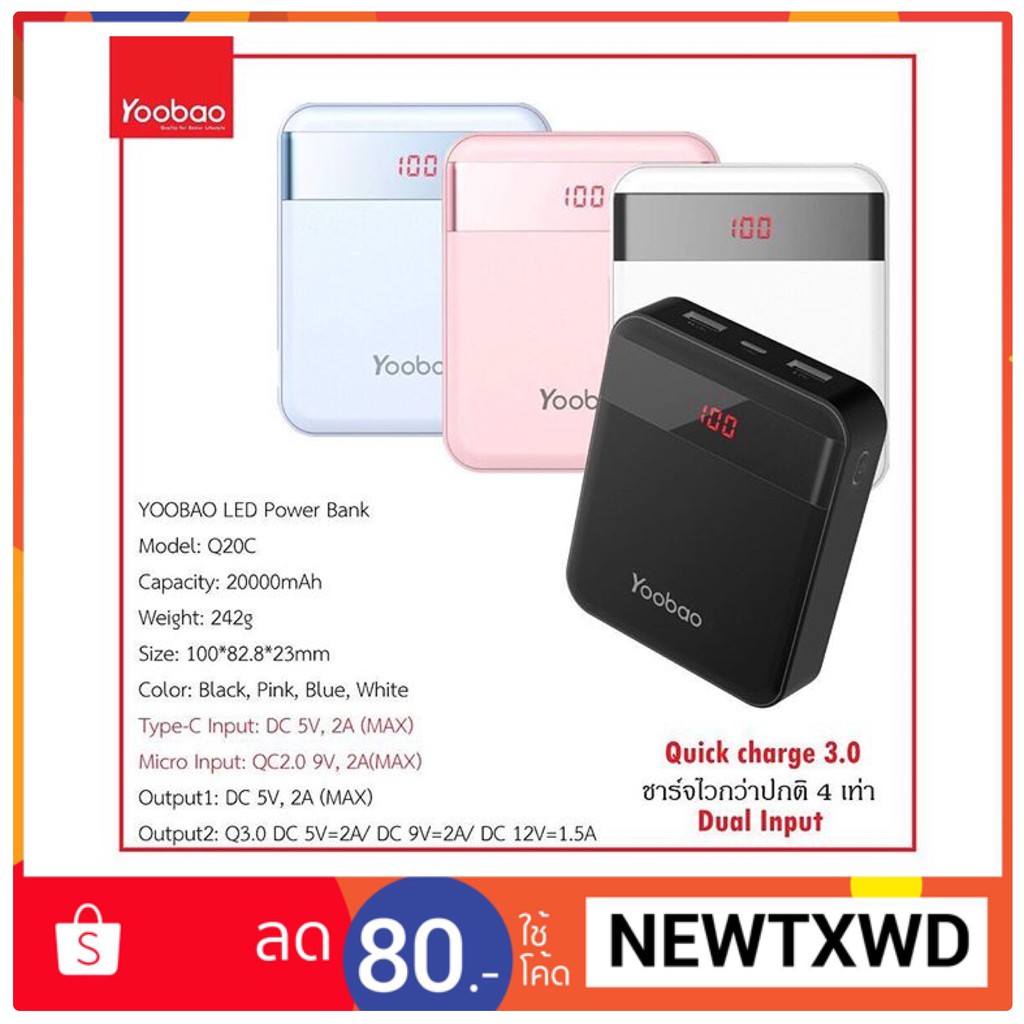 ของแท Yoobao ย เบา Q20c ความจ 20000 Mah ร บประก น 1 ป