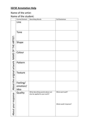 Annotation Help For Esl Students Art Design Any Exam Board